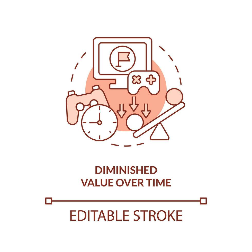Diminished value over time terracotta concept icon. Gamification cons in e learning abstract idea thin line illustration. Isolated outline drawing. Editable stroke Pro Vector
