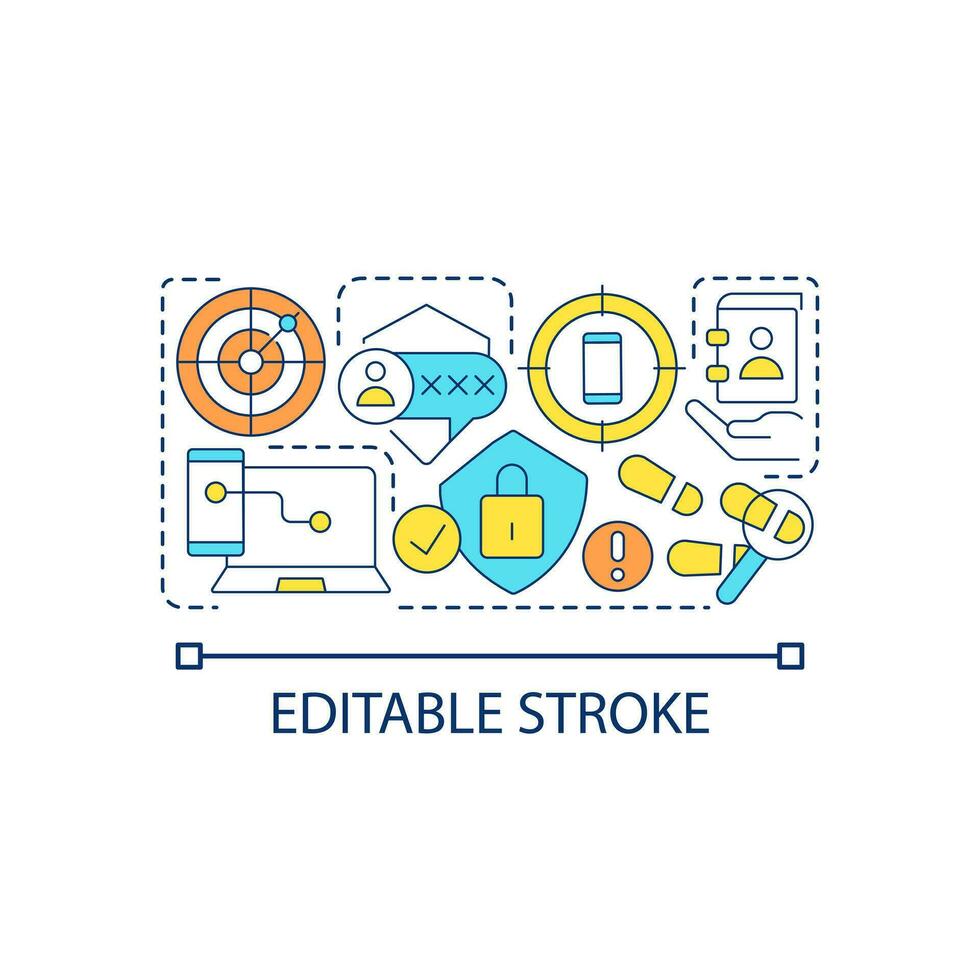 Detecting hacking attack concept icon. Cybersecurity. Leak personal information. Strong password abstract idea thin line illustration. Isolated outline drawing. Editable stroke Pro Vector