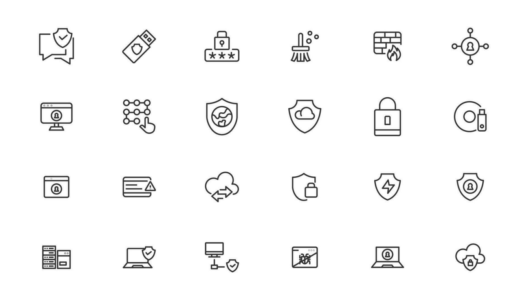 Security icon set. Containing secured payment, encryption, safety, insurance, data protection, detector, sensor, locked, password and cybersecurity icon. Outline icon collection Pro Vector