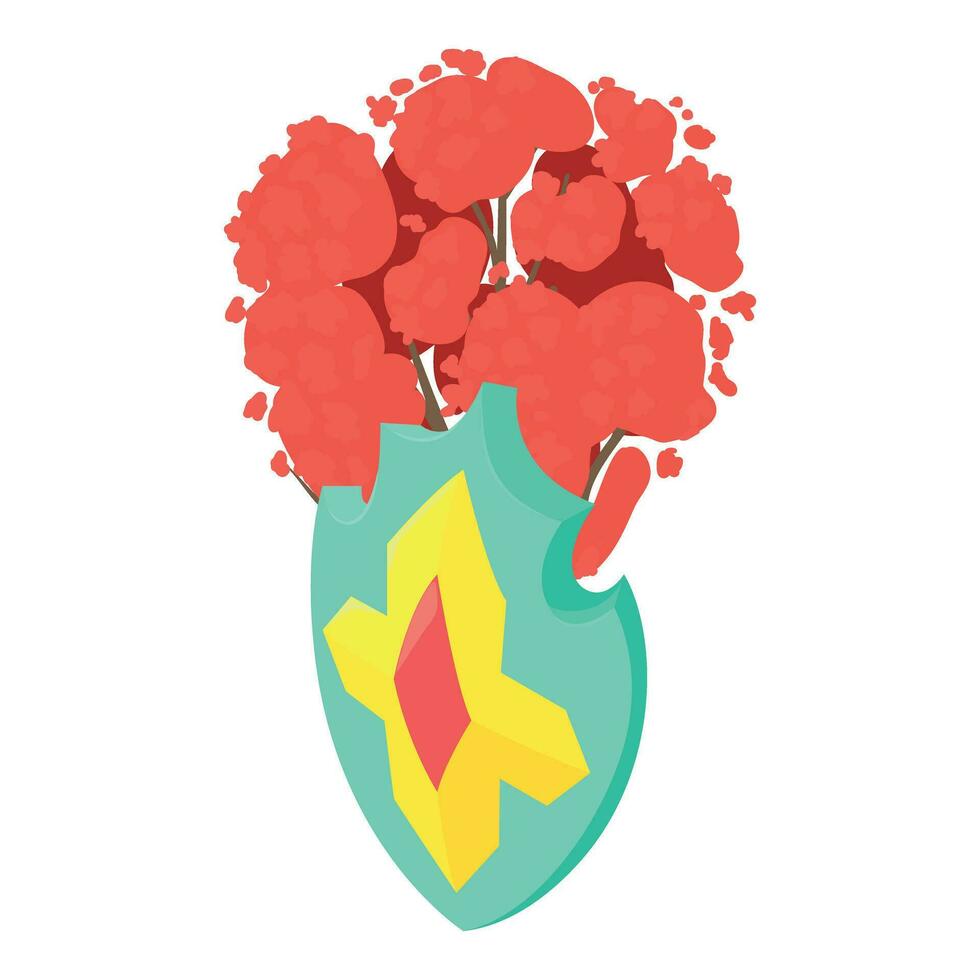 Crusader shield icon isometric vector. Crusader shield on red tree background Pro Vector