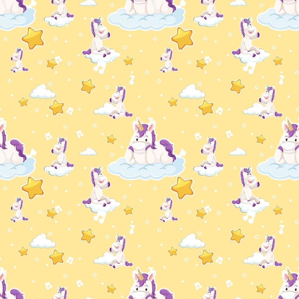 Unicorn seamless pattern with many clouds on yellow background Free Vector