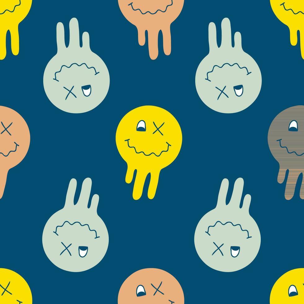 Retro style seamless pattern with flowing smile face. Cool print for tee, textile and fabric. Pro Vector