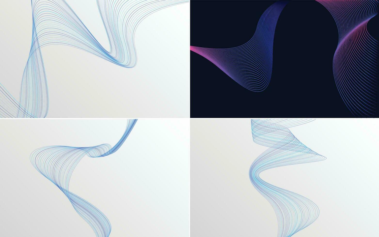 Set of 4 geometric wave pattern background Abstract waving line vector