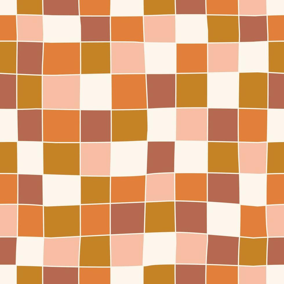 Groovy hippie 70s seamless pattern. Checkerboard, chessboard, mesh, waves patterns. Twisted and distorted vector texture in trendy retro psychedelic style. Pro Vector