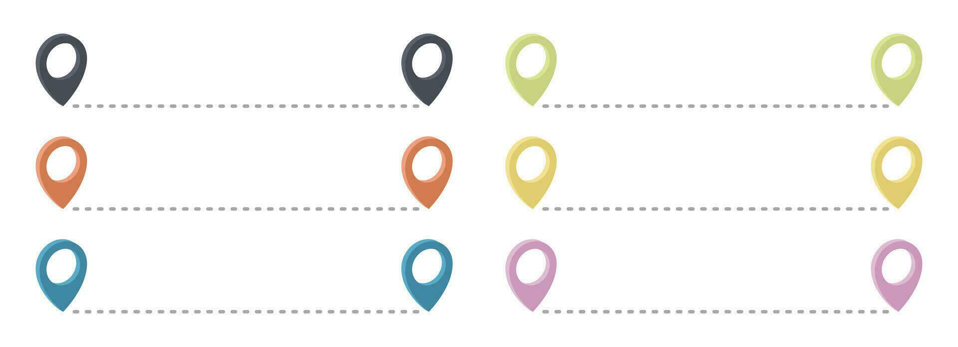 Route icon with pointer pin and dotted path vector set