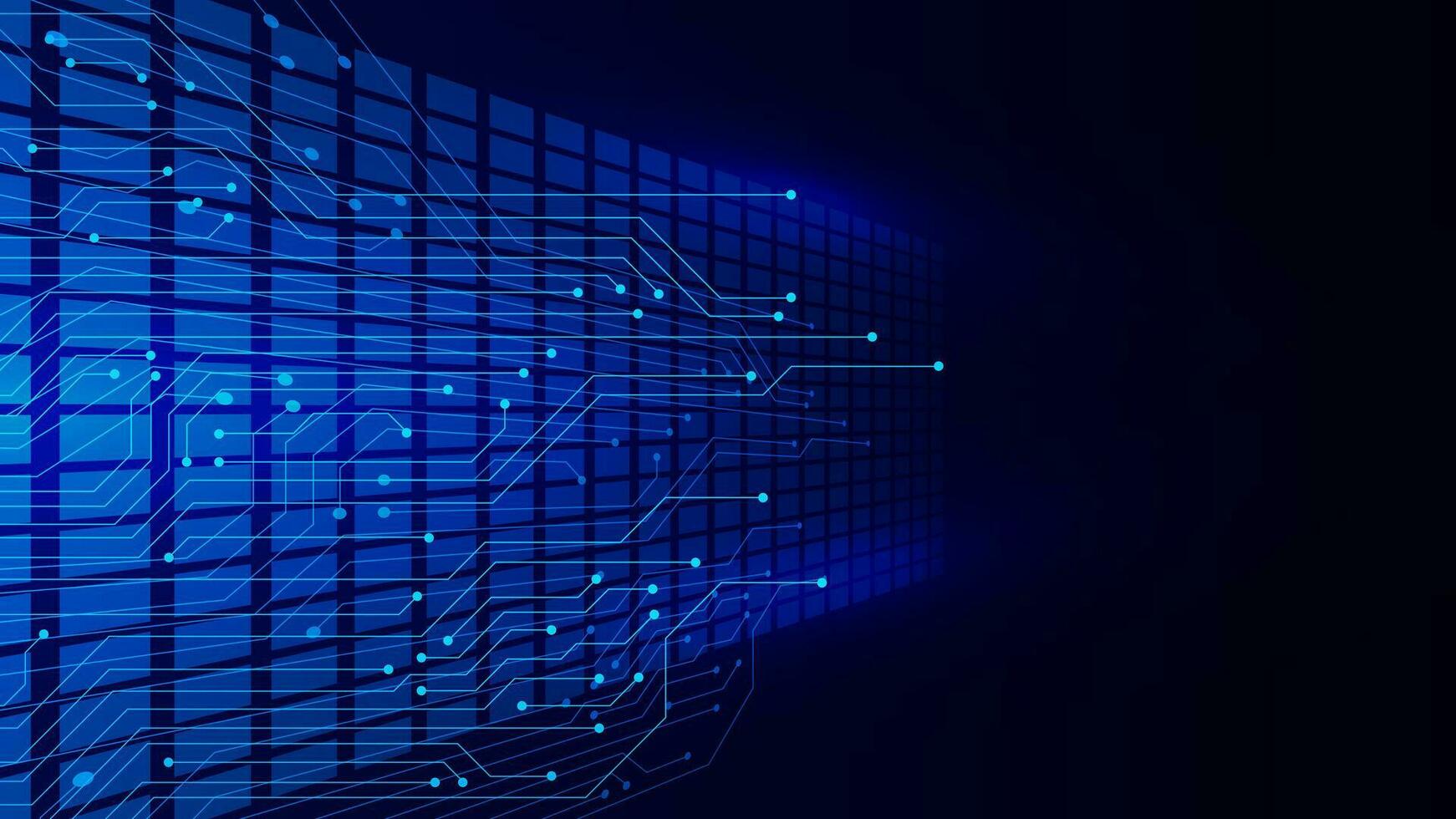 Abstract futuristic high-tech technology with electronic circuit board. Big data visualization, global networking and digital communication background. Vector illustration. Pro Vector