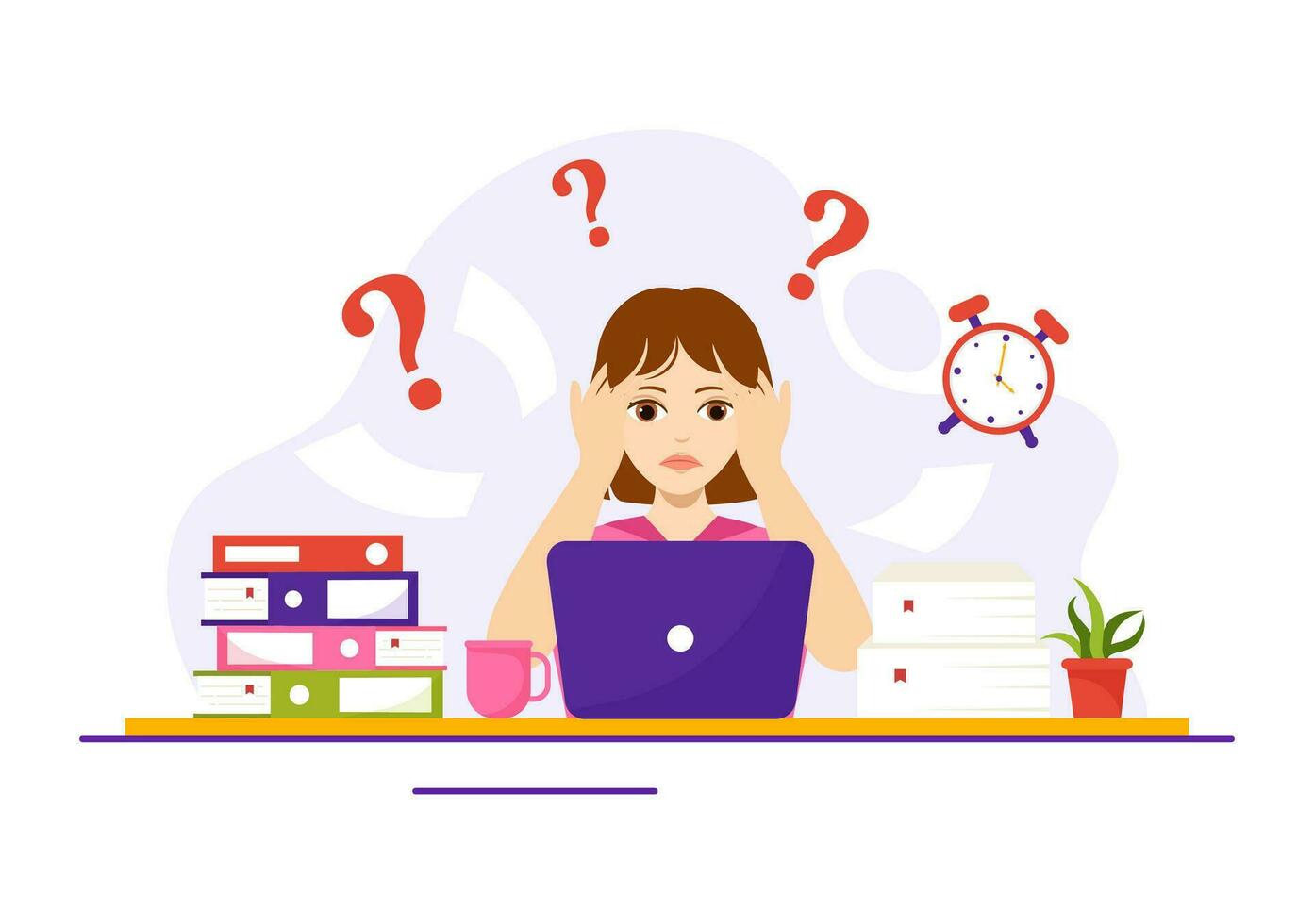 Overloading Vector Illustration with Busy work and Multitasking Employee to Finish Many Documents or Digital Information in Hand Drawn Templates Pro Vector