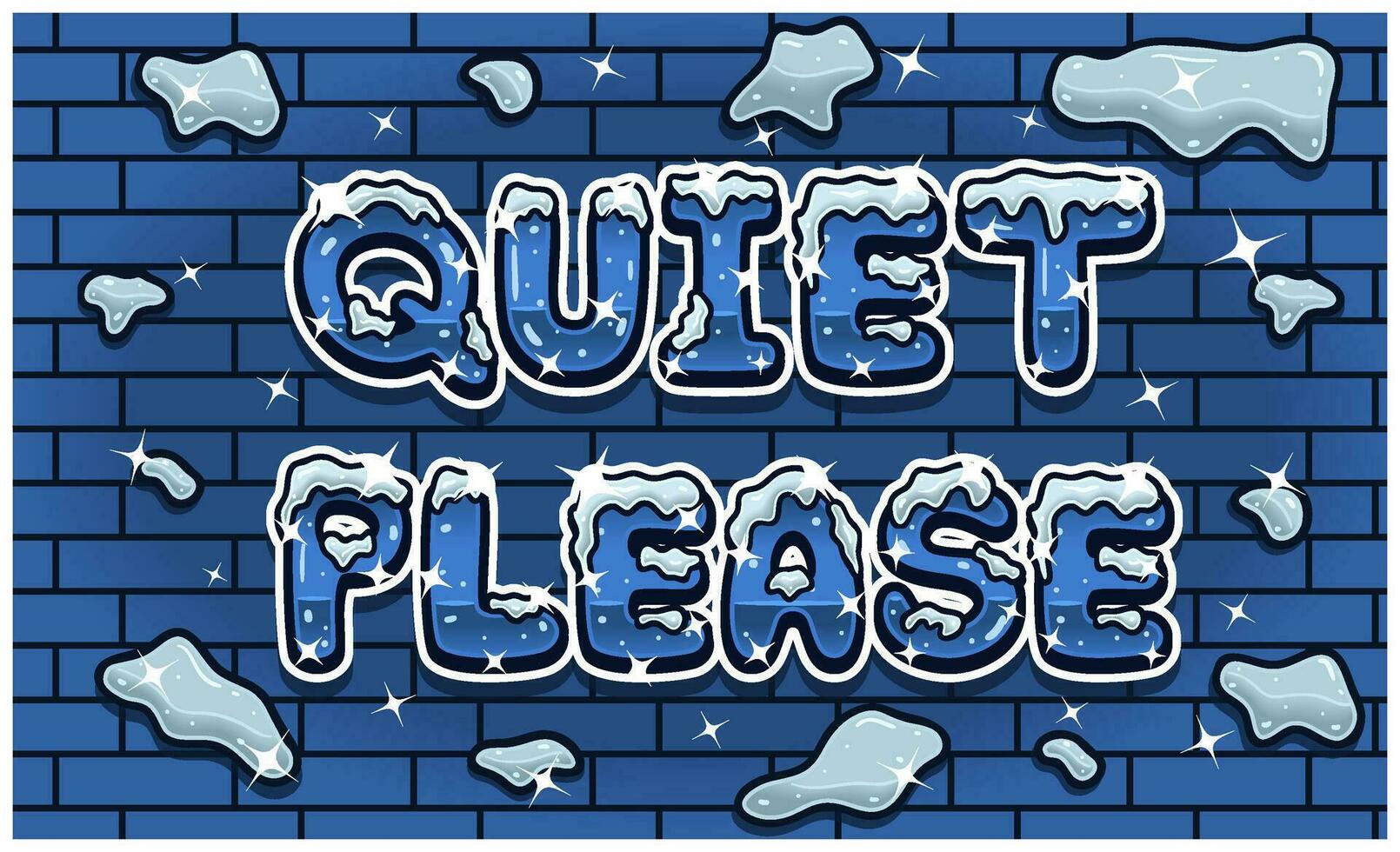 Quiet Please Lettering With Snow Ice Font In Brick Wall Background For Sign Template. Text Effect and Simple Gradients. Pro Vector