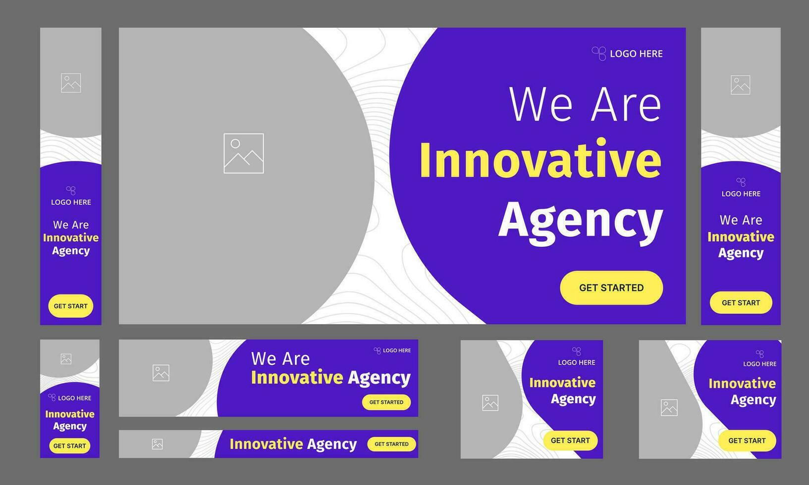 Set of innovative agency web banner template design for social media posts, digital agency web banner template, customizable vector eps 10 file format Pro Vector