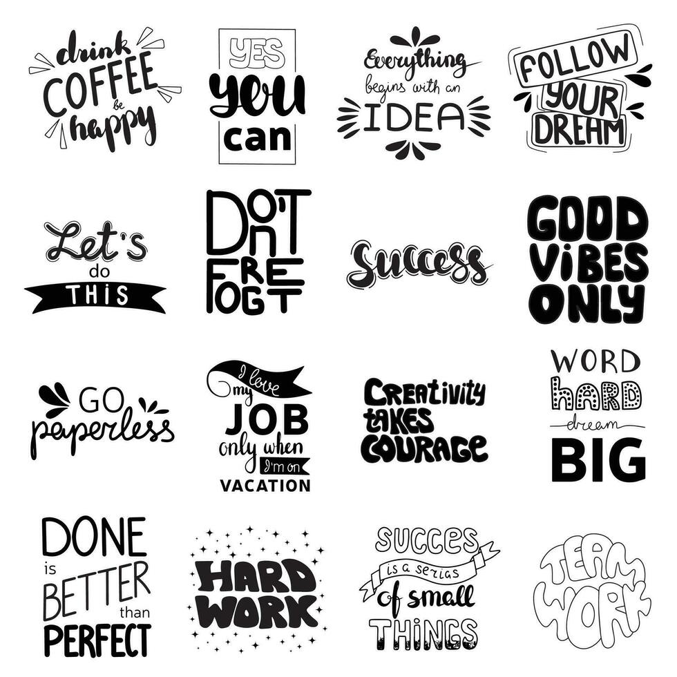 Yes you can, good vibes only, go paperless, follow your dream, don't forget, success, let's do this, done is better than perfect, hard work, team work. Good idea. Pro Vector