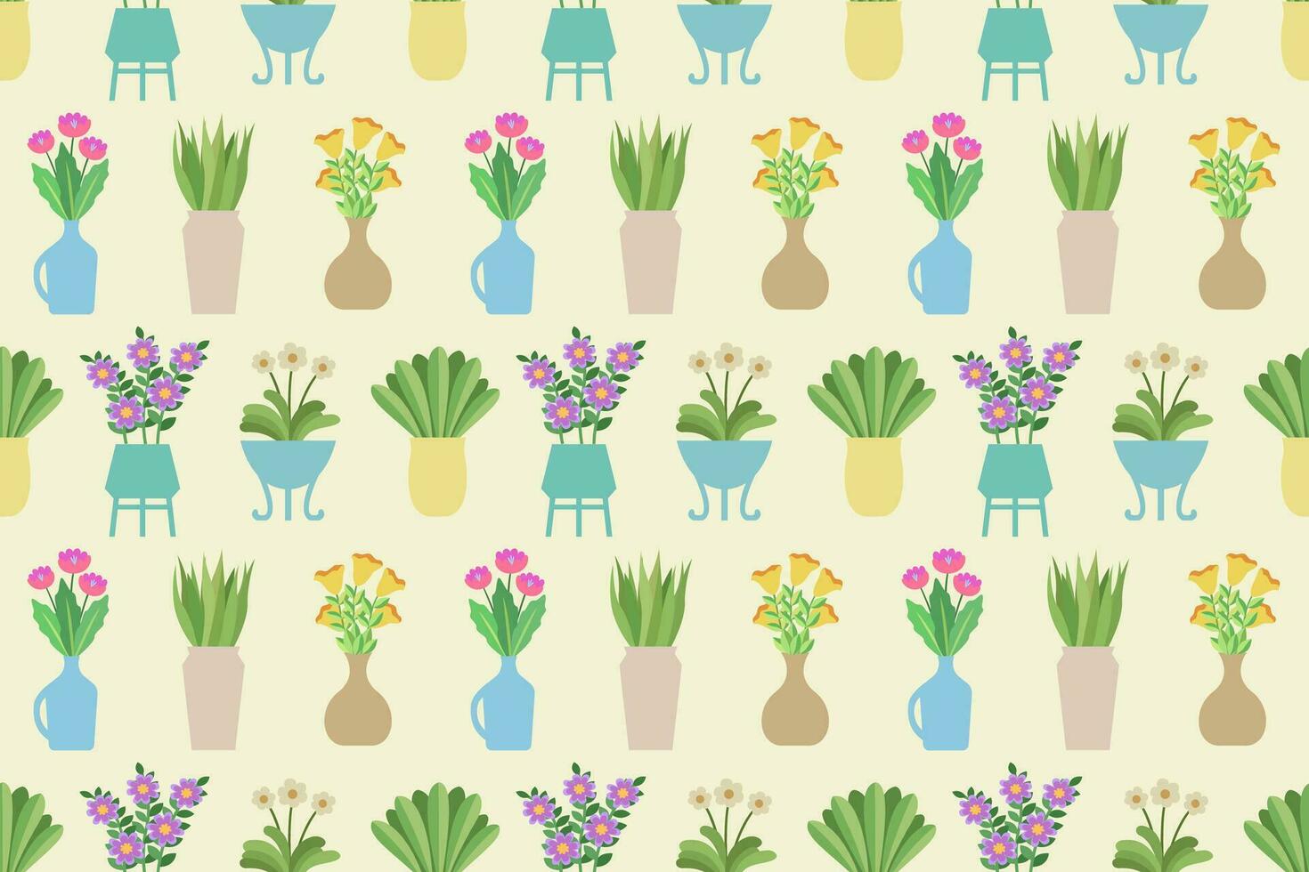 flowers in a vases seamless pattern. Endless repeating pattern with bouquets in different vases. Pro Vector