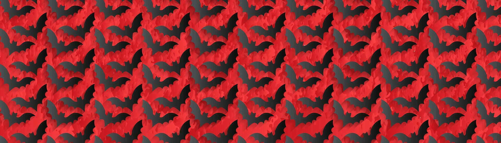 Gradient Bat Pattern on textured red gradient Background. Vector Illustration Template Banner. EPS 10. Pro Vector