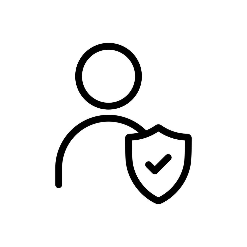 User shield, user privacy control, verified user, account verification, protection concept icon in line style design isolated on white background. Editable stroke. Pro Vector