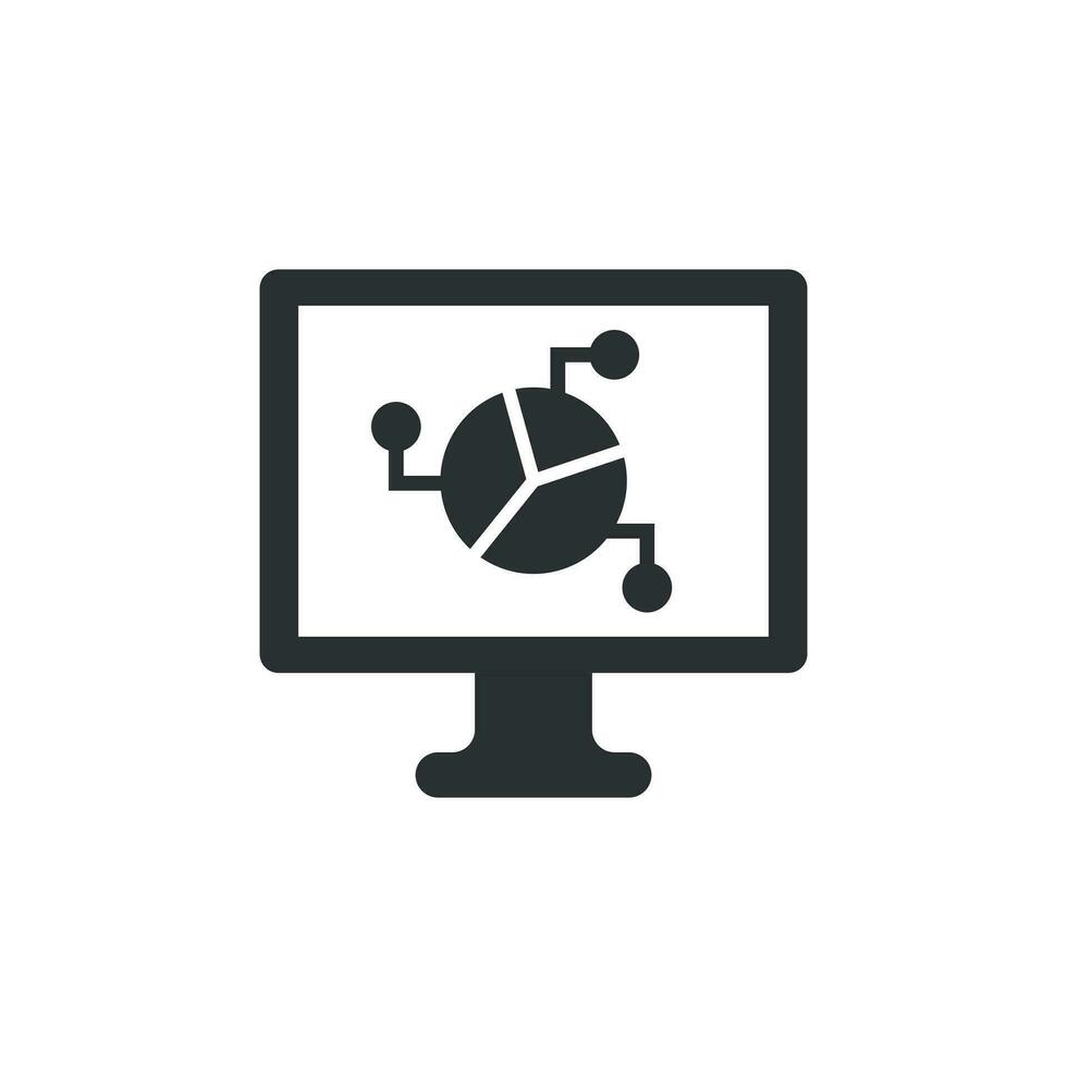 Analytic monitor icon in flat style. Diagram vector illustration on white isolated background. Statistic business concept. Pro Vector