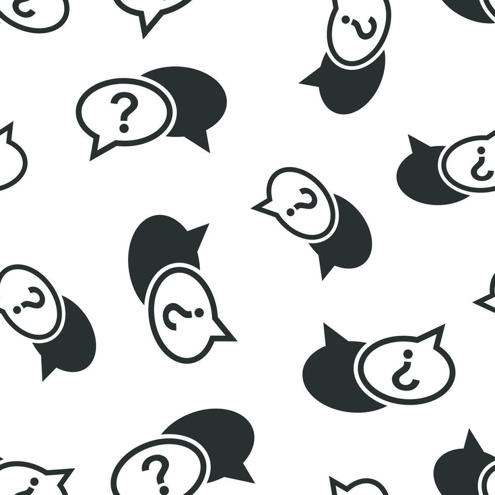 Question mark icon seamless pattern background. Discussion speech bubble vector illustration. Question symbol pattern. Pro Vector