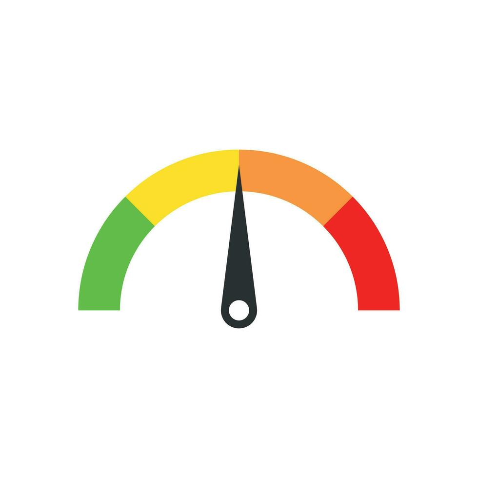 Meter dashboard icon in flat style. Credit score indicator level vector illustration on white isolated background. Gauges with measure scale business concept. Pro Vector