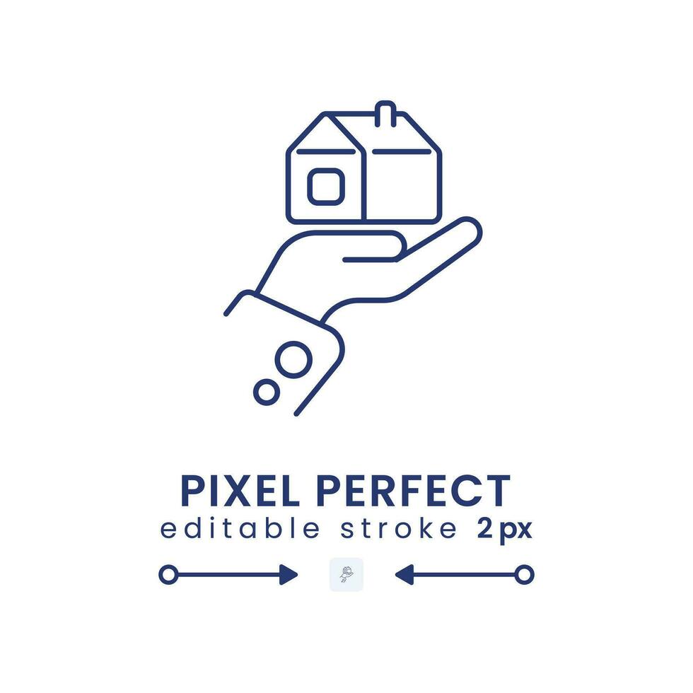 Homeownership linear desktop icon. Real estate. Property ownership. Buying house. Home loan. Pixel perfect, outline 2px. GUI, UX design. Isolated user interface element for website. Editable stroke Pro Vector