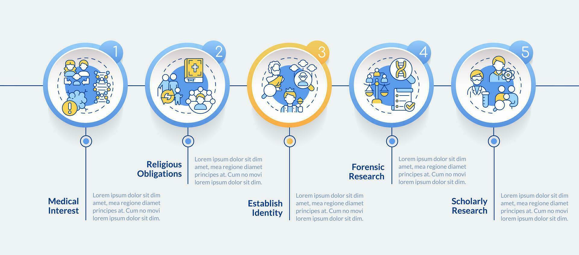 Genealogical research motivation blue circle infographic template. Data visualization with 5 steps. Editable timeline info chart. Workflow layout with line icons Pro Vector and Pro SVG