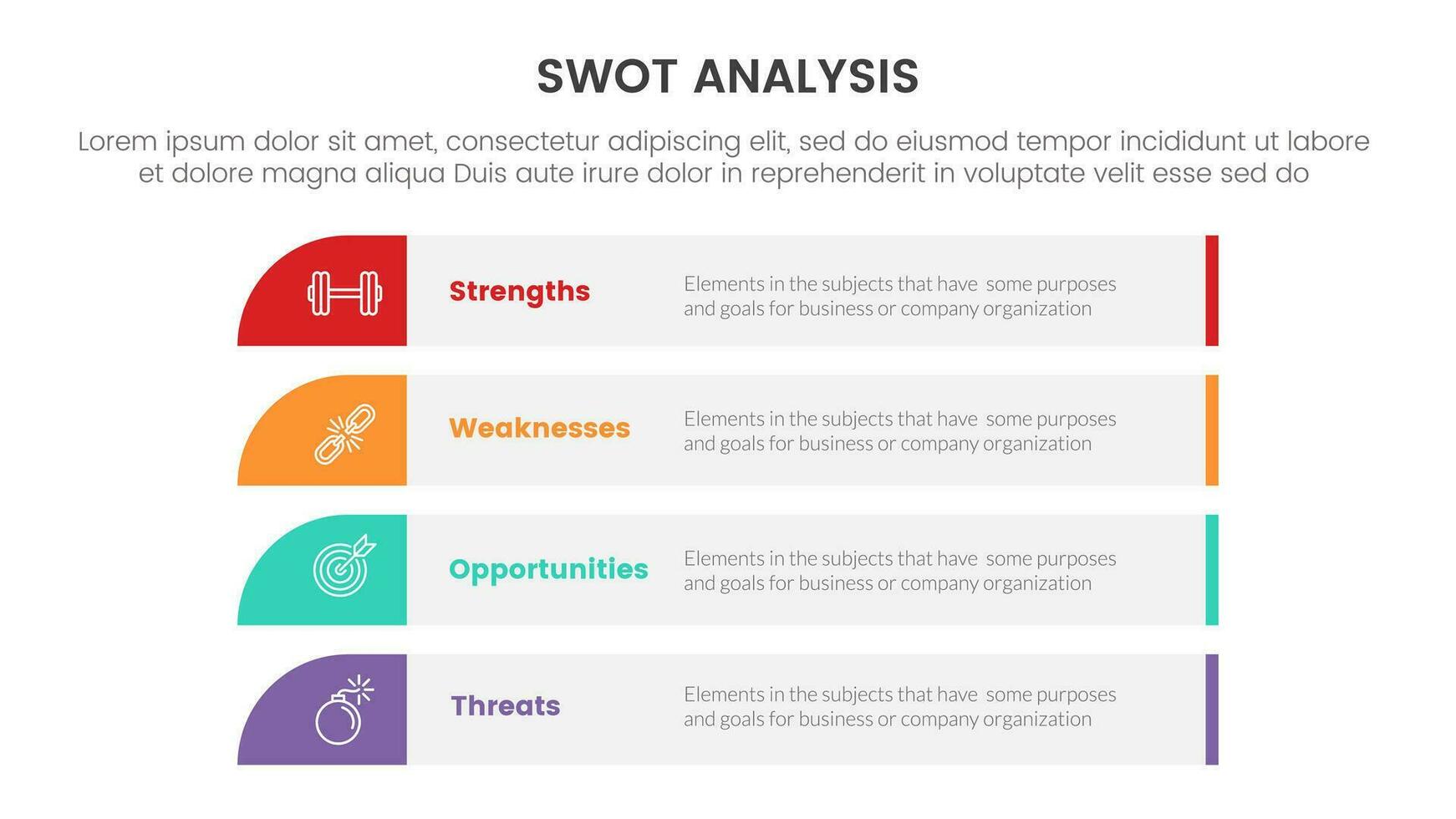 swot analysis concept with for infographic template banner with long rectangle box vertical four point list information vector