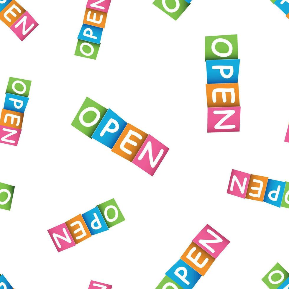 Open card seamless pattern background. Business flat vector illustration. Open sign symbol pattern. Pro Vector and Pro SVG