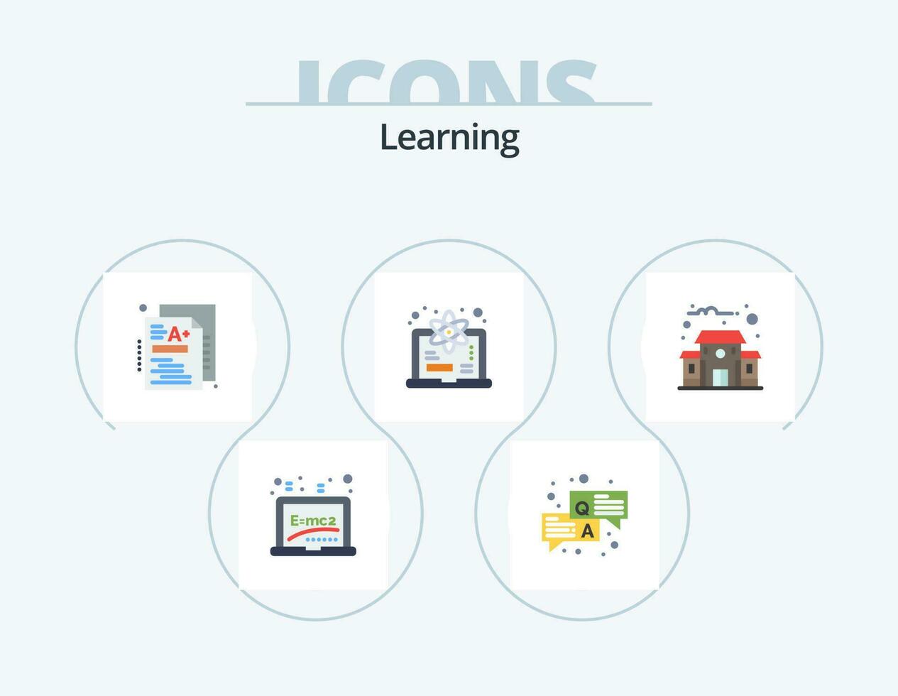 Learning Flat Icon Pack 5 Icon Design. education building. science. test. learn. computer vector