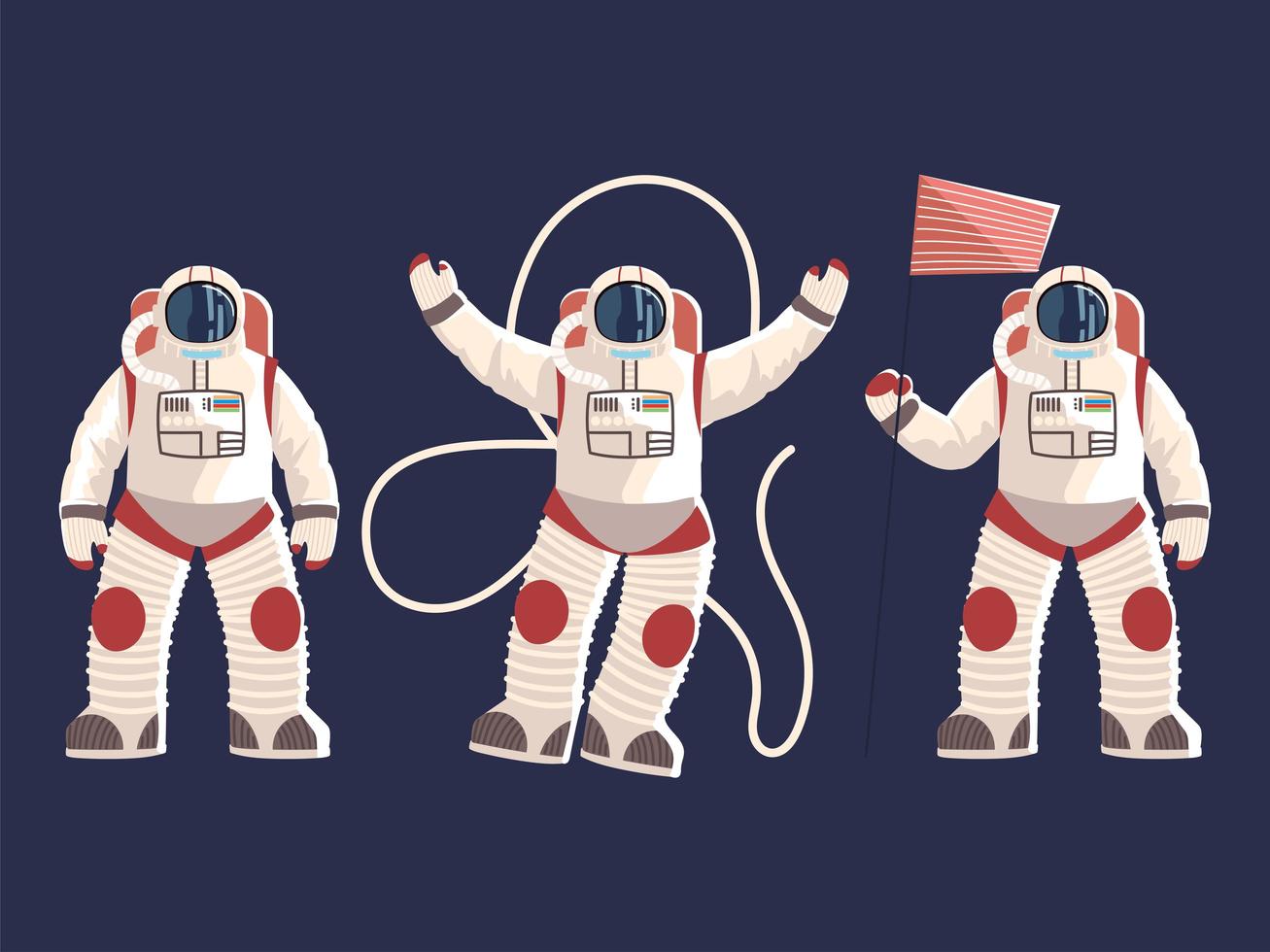 astronauts character in spacesuits helmet uniform with flag space Free Vector
