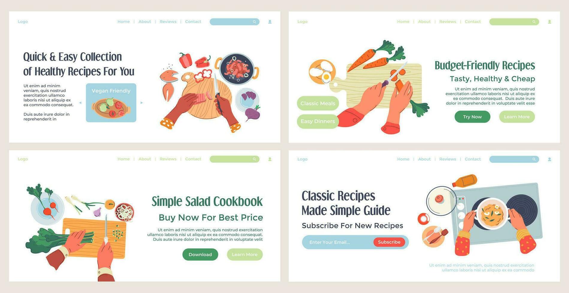 Landing banneer set with cookbook advetising Pro Vector
