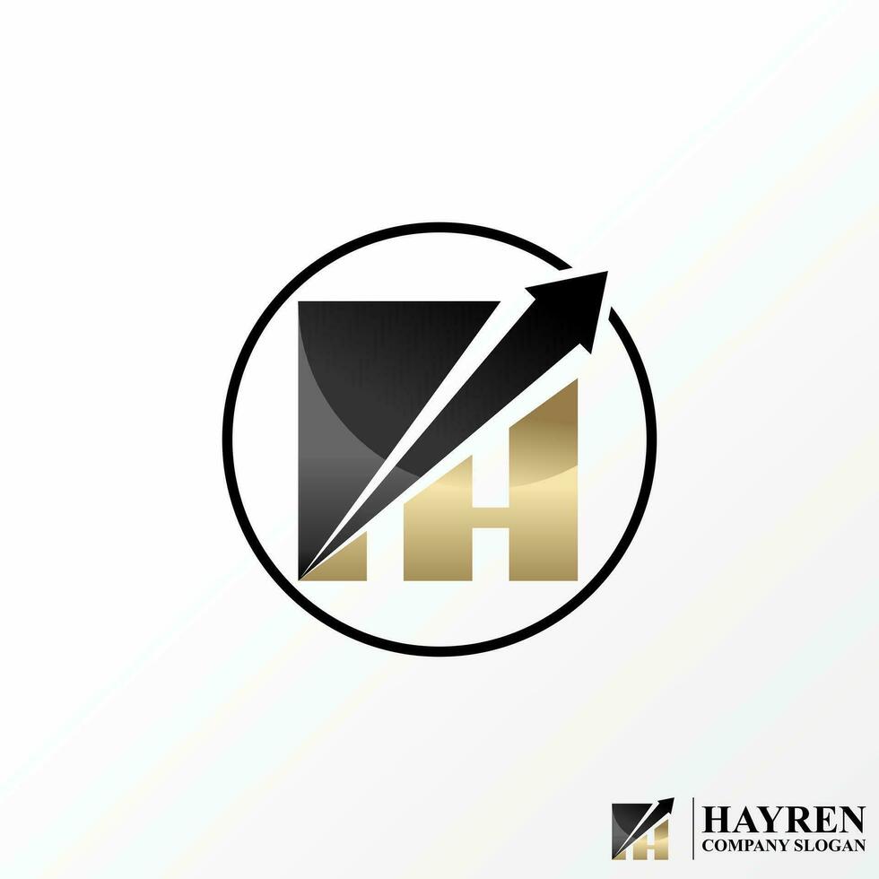 Logo design graphic concept creative abstract letter H font vector stock arrow up and graph bar chart on circle. Related to business increase progress Pro Vector