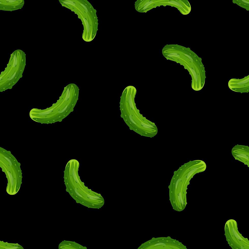 Seamless pattern with a green cucumber on a black background. Pattern with vegetables Pro Vector