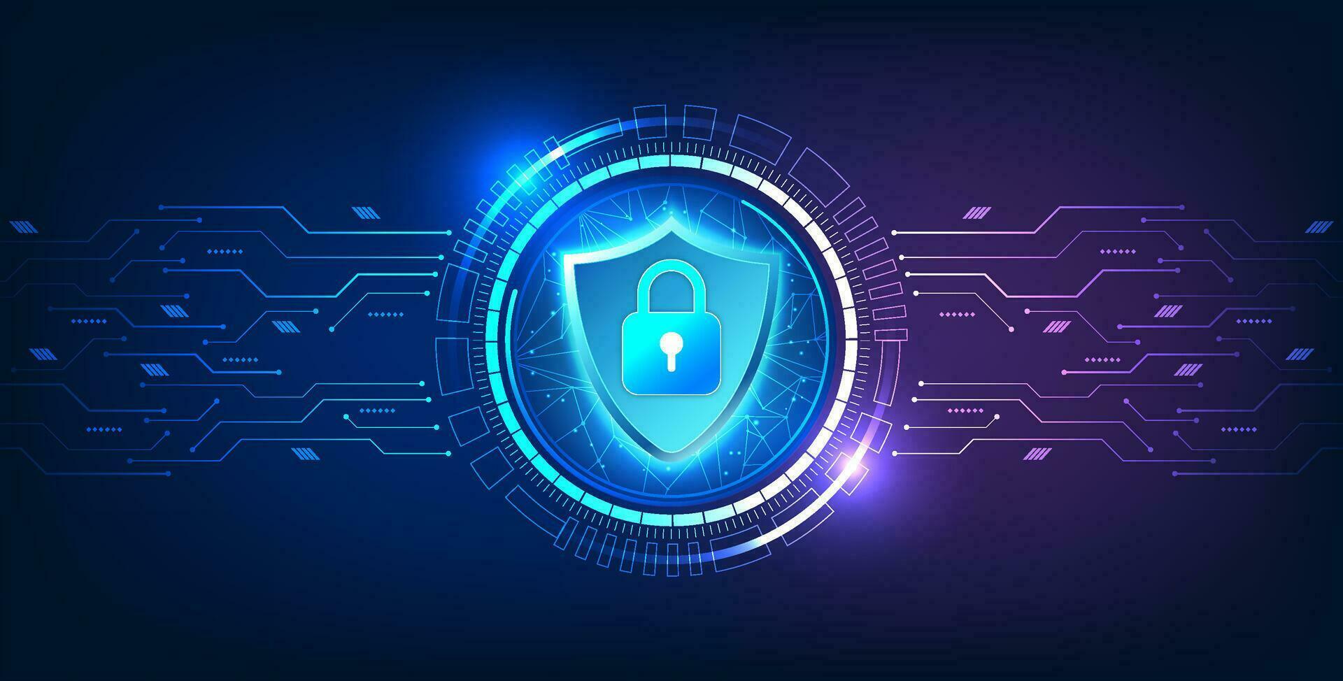 Security technology, shield with a lock inside, with a technology circle with a circuit board on the side. It is a technology that protects cyber data from being leaked or lost. Pro Vector