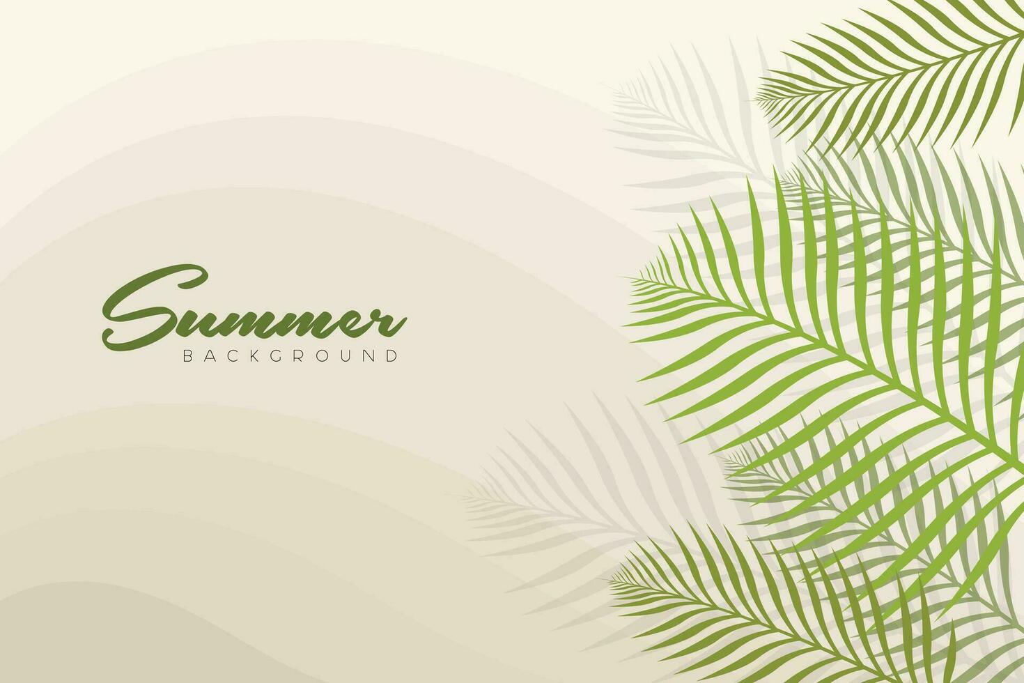 Summer Background with green and yellow tones and soft green palm leaves on the right side of the frame. Summer background Landscape, header, and card. vector