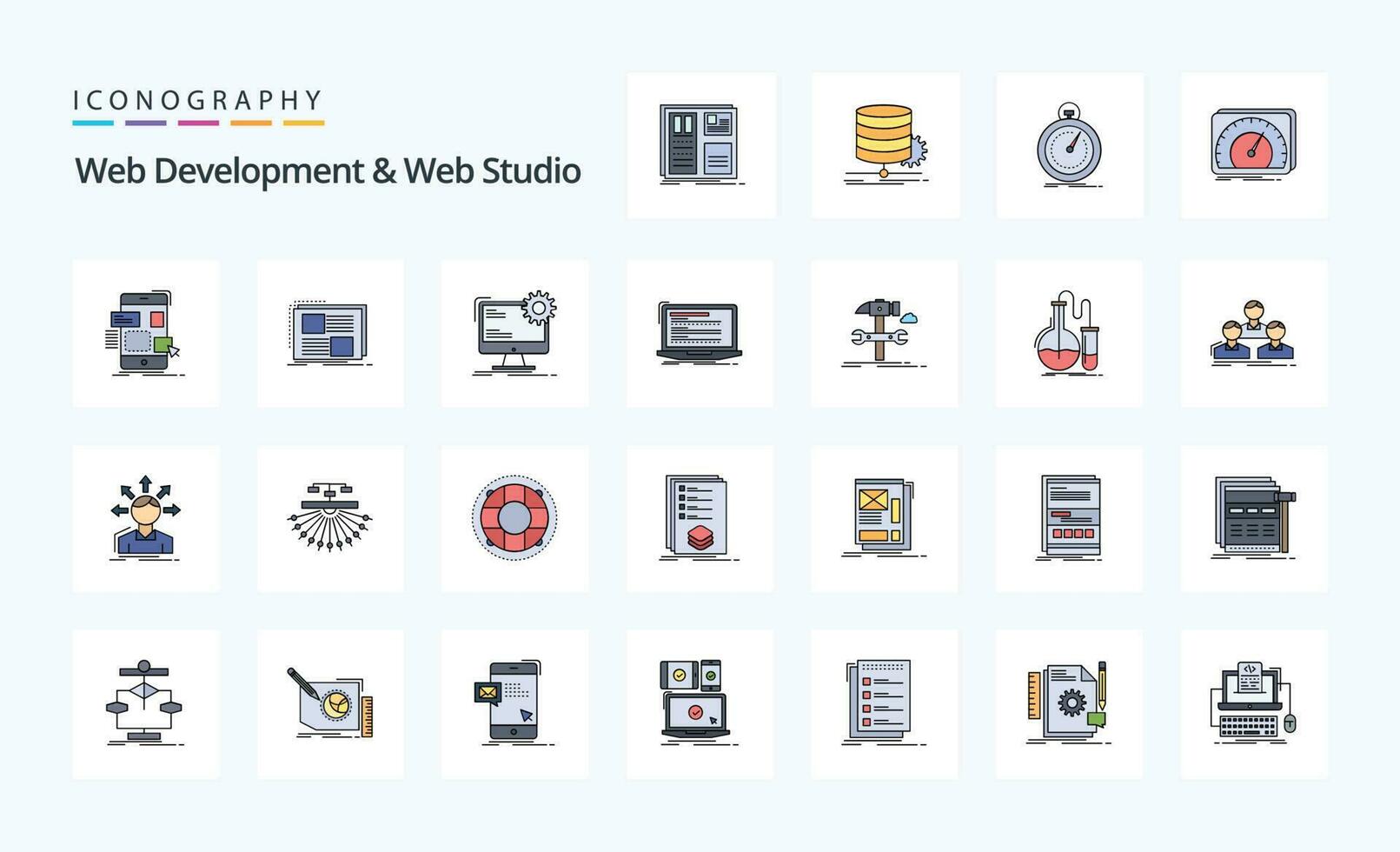 25 Web Development And Web Studio Line Filled Style icon pack vector