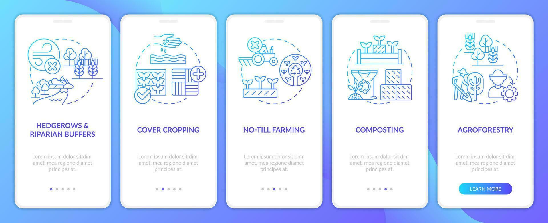 Regenerative agriculture techniques blue gradient onboarding mobile app screen. Walkthrough 5 steps graphic instructions with linear concepts. UI, UX, GUI templated Pro Vector