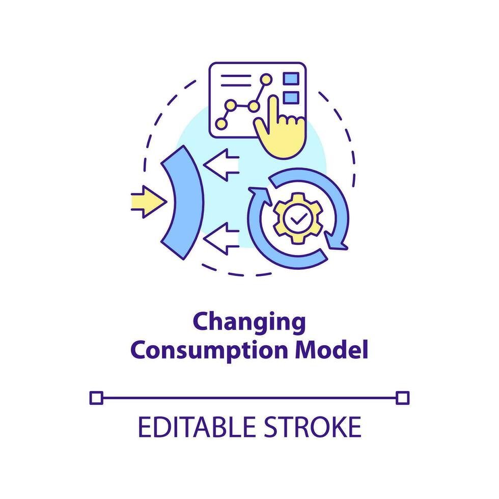 Changing consumption model concept icon. Optimize customers interaction. Business abstract idea thin line illustration. Isolated outline drawing. Editable stroke Pro Vector