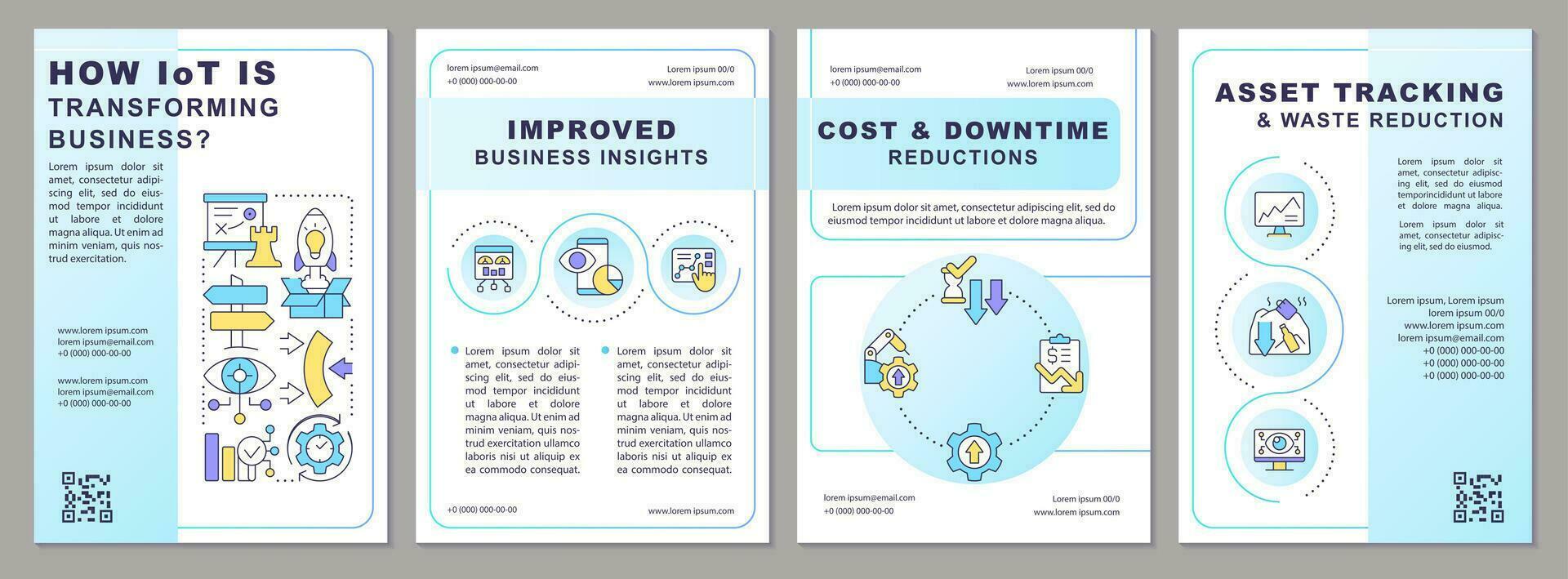 IoT business transformation light blue brochure template. Digital. Leaflet design with linear icons. Editable 4 vector layouts for presentation, annual reports Pro Vector