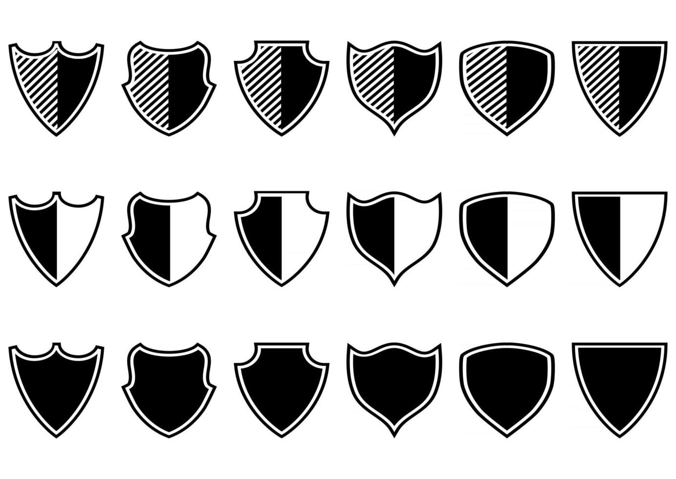 Collection of vector shield in different forms. Protection symbol. Security icons. Shield icons in flat style isolated on white background. 170x170 pixel pictogram. Vector Pro Vector