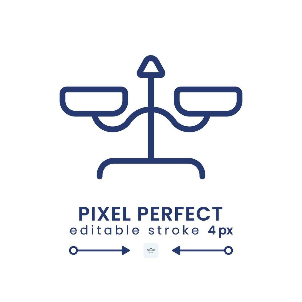 Balance scales linear desktop icon. Weight measuring device. Court justice. Equality symbol. Pixel perfect, outline 4px. GUI, UX design. Isolated user interface element for website. Editable stroke Pro Vector