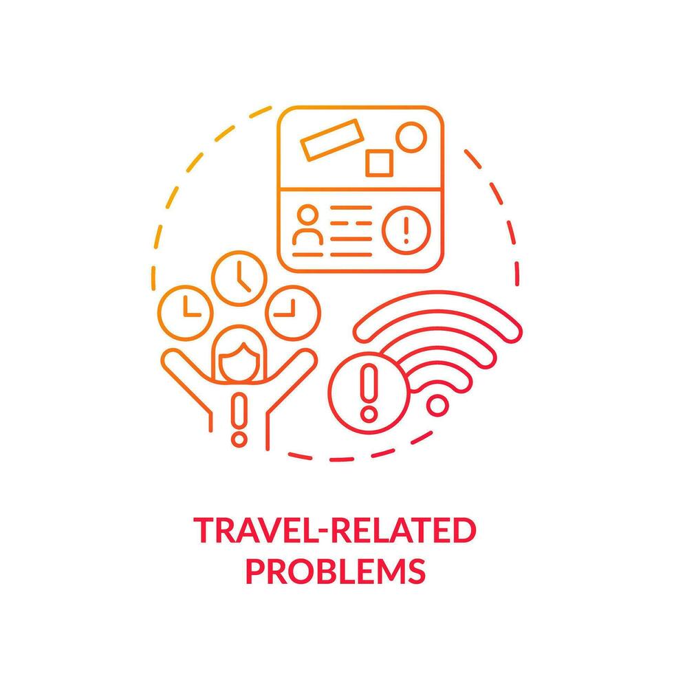 Travel related problems red gradient concept icon. Wi fi connection. Time zones. Visa application. Digital nomad lifestyle abstract idea thin line illustration. Isolated outline drawing Pro Vector and Pro SVG