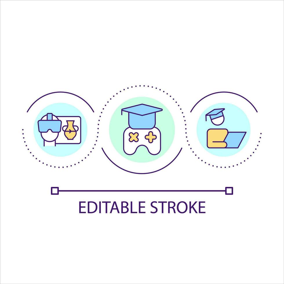 VR technology in learning loop concept icon. Ad gaming in education process. Innovative strategy abstract idea thin line illustration. Isolated outline drawing. Editable stroke Pro Vector