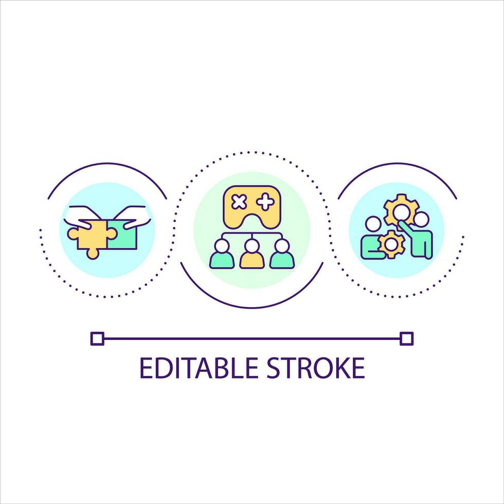 Gaming connecting users loop concept icon. Online community of gamers. Gamification strategy abstract idea thin line illustration. Isolated outline drawing. Editable stroke Pro Vector