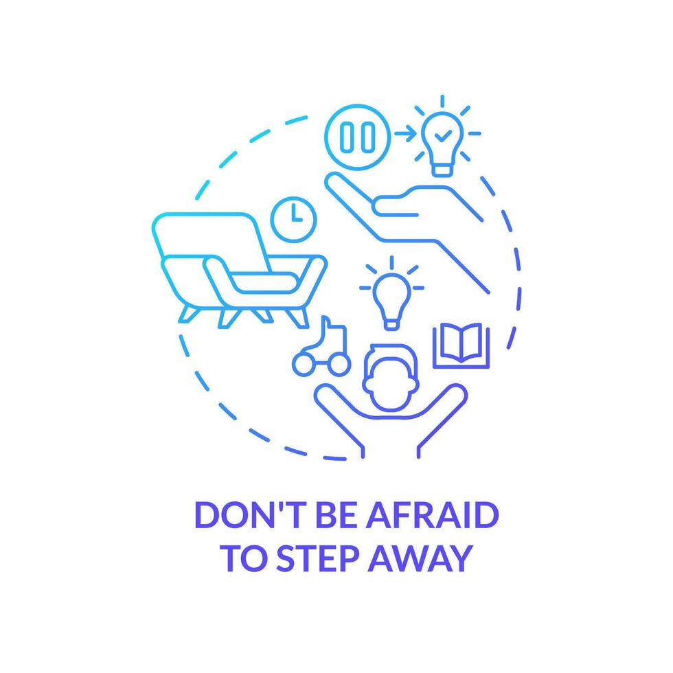 Dont be afraid to step away blue gradient concept icon. Ideas searching. Breaking through creative block tip abstract idea thin line illustration. Isolated outline drawing Pro Vector and Pro SVG