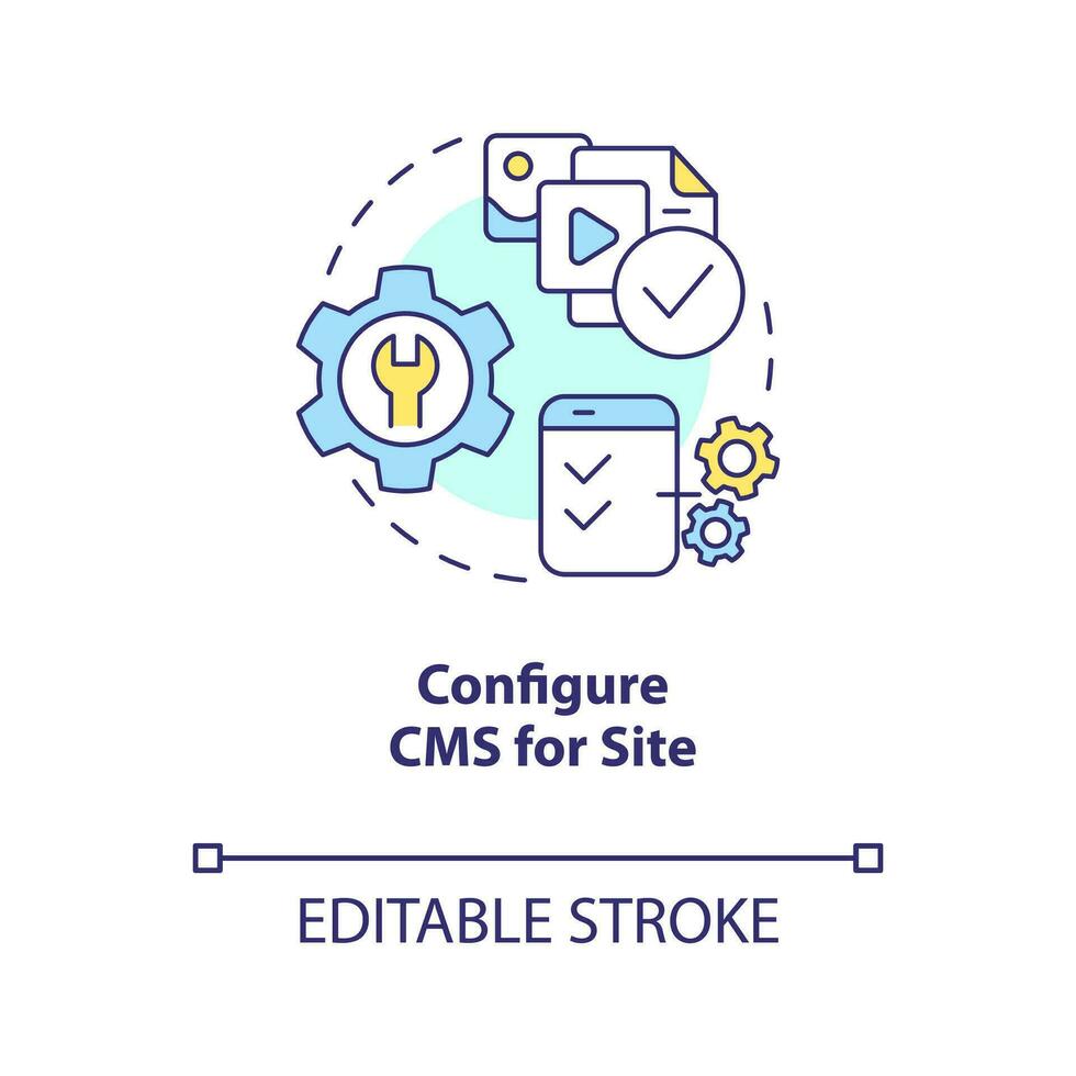 Configure CMS for site concept icon. Website customization. Optimization tools abstract idea thin line illustration. Isolated outline drawing. Editable stroke Pro Vector
