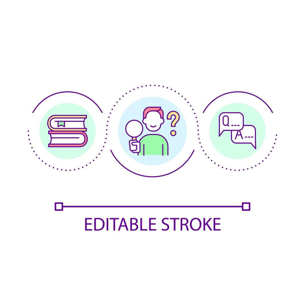 Searching information loop concept icon. Studying process. Reading books. Linguistic research abstract idea thin line illustration. Isolated outline drawing. Editable stroke Pro Vector