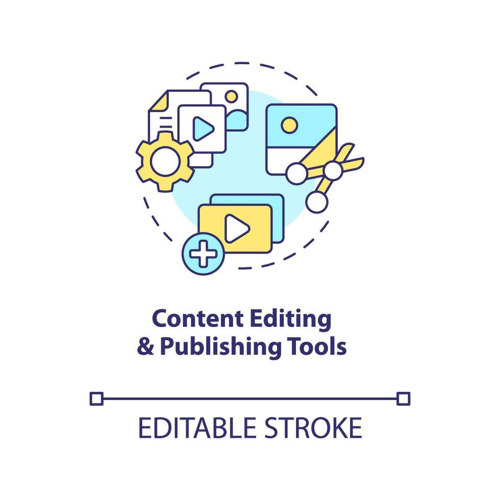Content editing and publishing tools concept icon. CMS functionalities. Social media abstract idea thin line illustration. Isolated outline drawing. Editable stroke Pro Vector