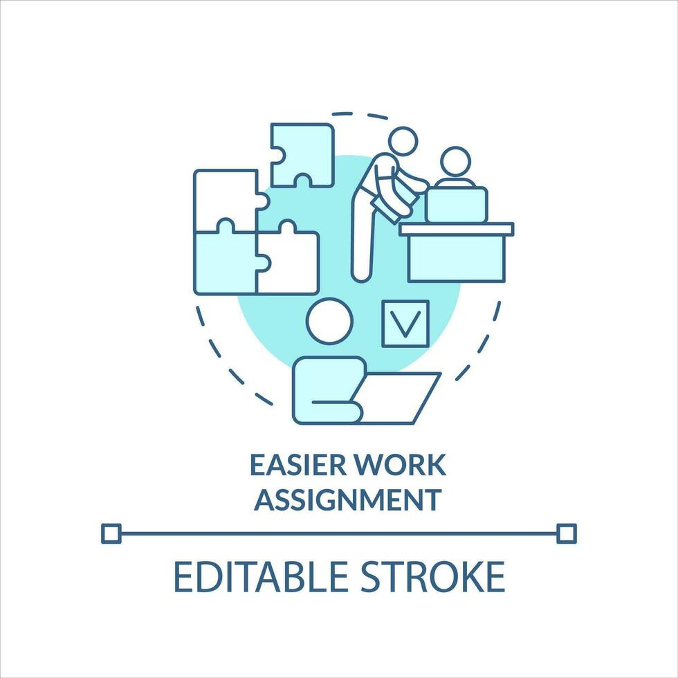 Easier work assignment turquoise concept icon. Effective completing job tasks abstract idea thin line illustration. Isolated outline drawing. Editable stroke Pro Vector