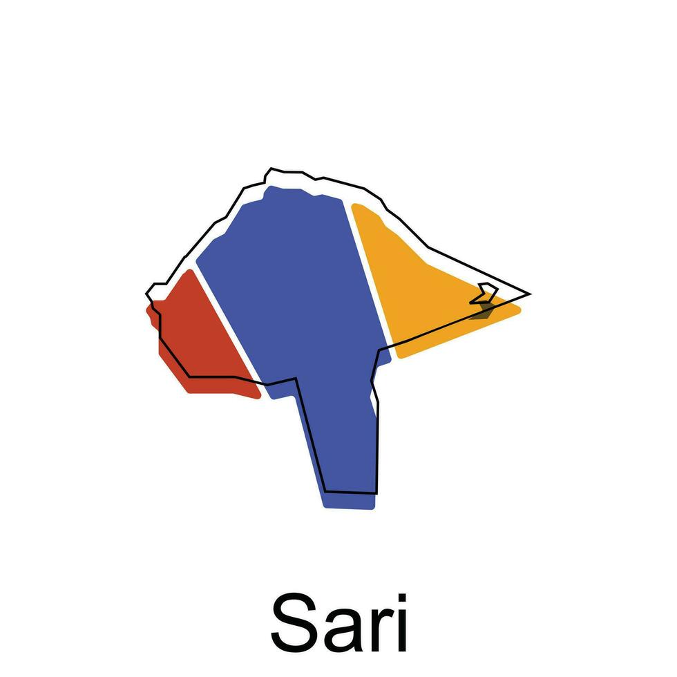 Map of Sari illustration design template, geometric shapes and lines style isolated on white background vector