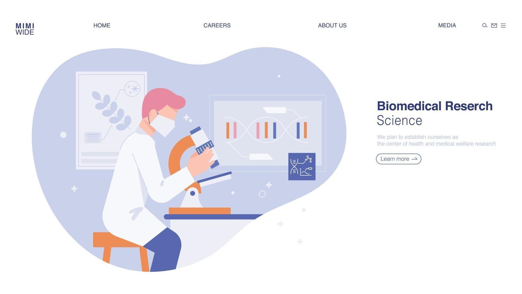 A researcher is doing research while looking through a microscope in a laboratory. Web page concept template design. Pro Vector