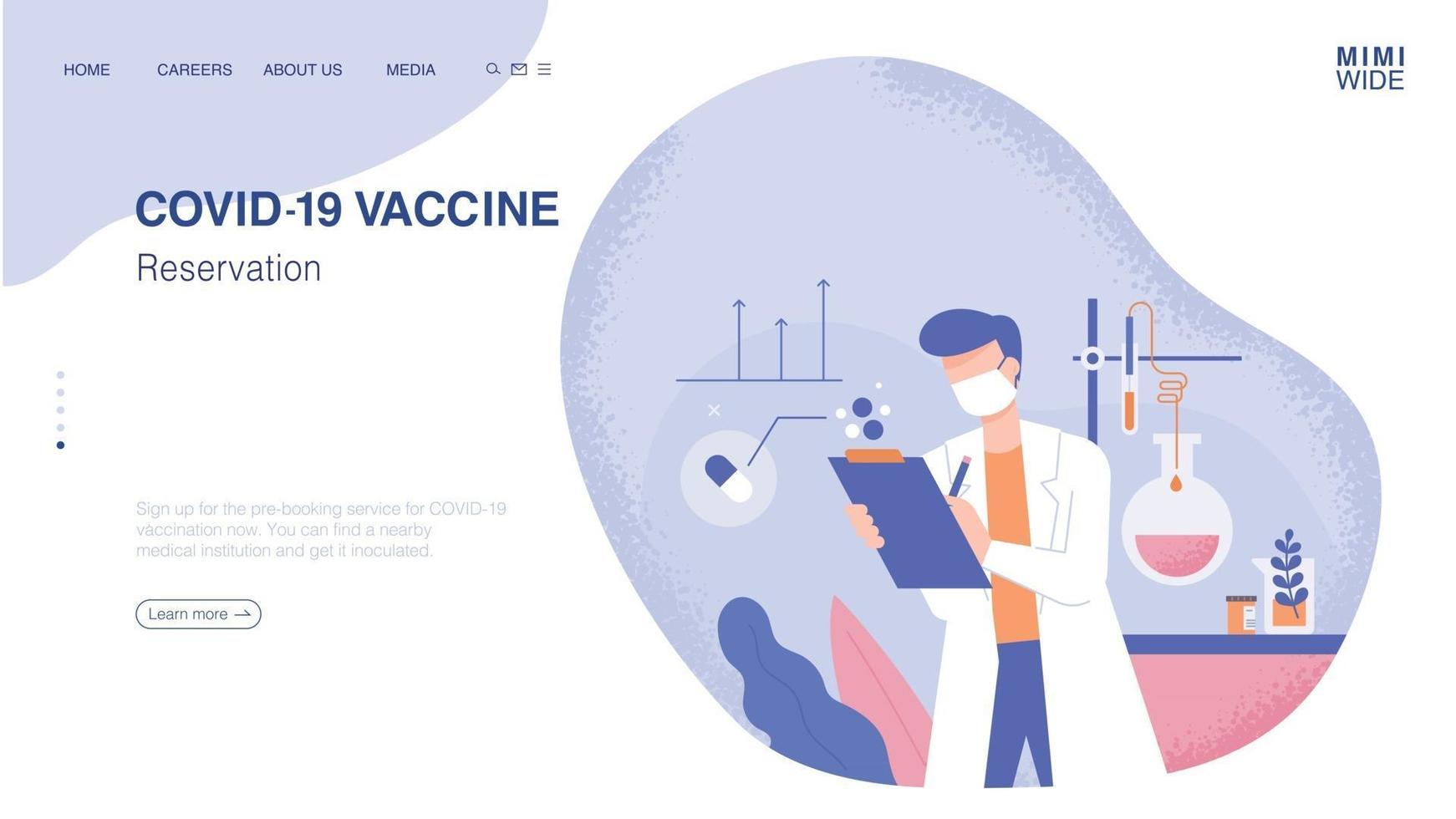 A researcher is looking at a chart in a laboratory. In his background there are experimental equipment. Online web page concept template. Pro Vector