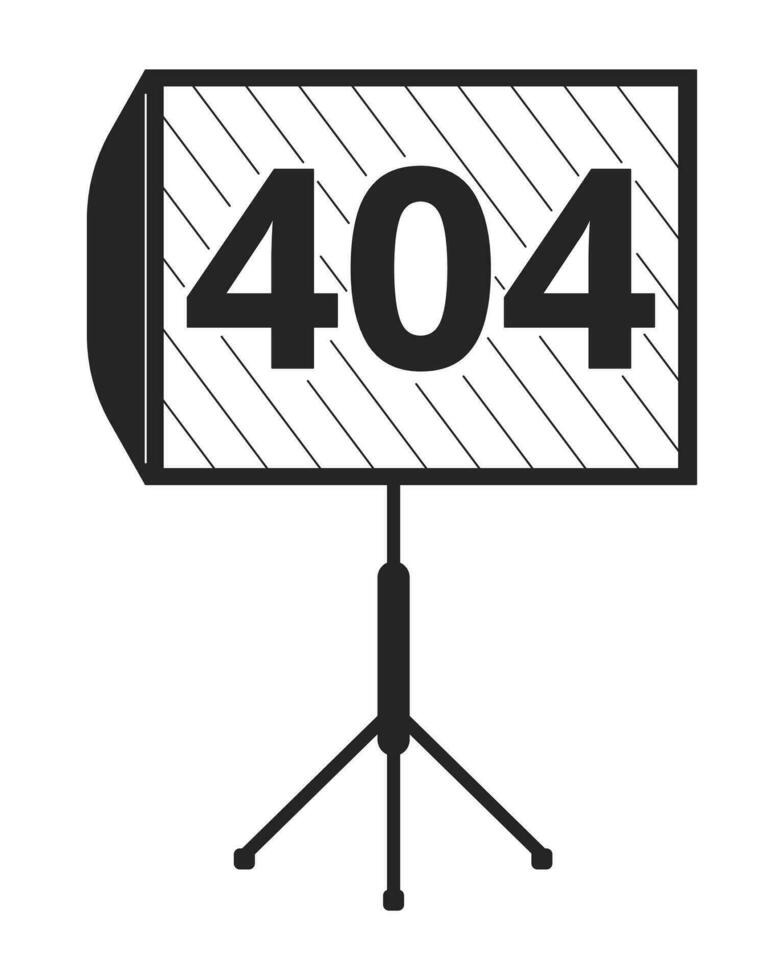 LED panels with tripod black white error 404 flash message. Photo studio equipment. Monochrome empty state ui design. Page not found popup cartoon image. Vector flat outline illustration concept Pro Vector