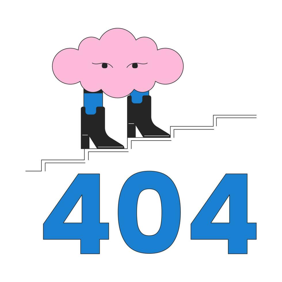Surreal cloud walking in boots error 404 flash message. Cumulus climbing stairs. Dream. Empty state ui design. Page not found popup cartoon image. Vector flat illustration concept on white background Pro Vector